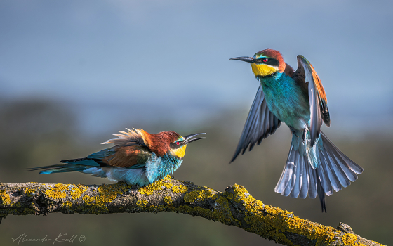 Момент из насыщенной на сюжеты жизни золотистых щурок.
