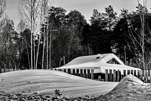 В снегах.