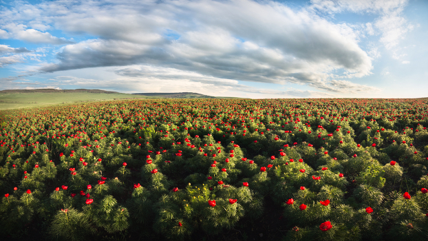Поля диких пионов в Ставропольском крае простираются на километры, а цветов здесь миллионы! Однако, пора цветения очень скоротечна и длится не более 10 дней, приходится на конец апреля - начало мая.