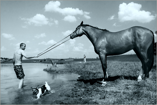 про июльский зной, купание коня и шныряющую собачонку