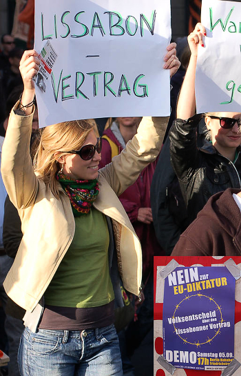 Демонстрация против принития Лиссабонского договора.
