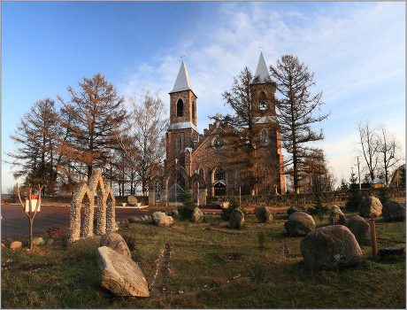 Костел Св.Иосифа в Рубежевичах, конец ноября, панорама из 5 вертикальных кадров. Тескт и весь фоторепортаж лежит здесь - http://www.interfax.by/article/56541