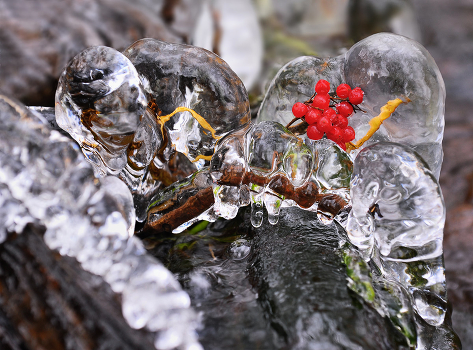 Вернулись сосульки,а сними и образы , отражения ,преломления. Небо серое,а мелочи под ногами,по берегу ручья сами прыгнули в обьектив.