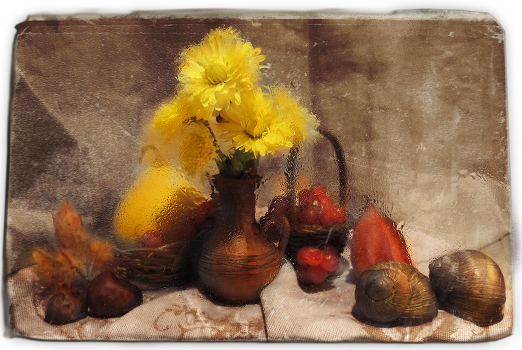 как то вечером, когда мои улитки спали...мне захотелось поснимать натюрморт, улиток будить не стала...