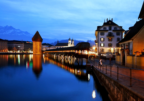 Башня построена в 1300г.г.,символ Люцерна. Рядом часовенный мост ,того же возраста.