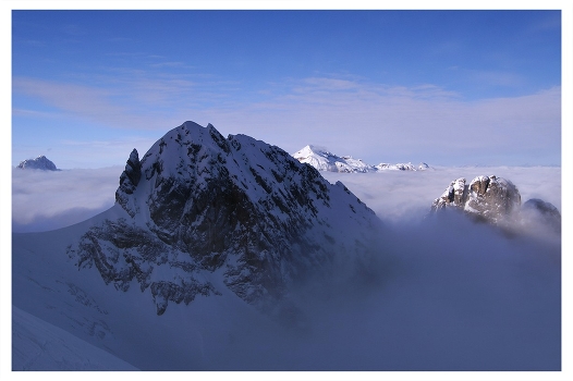 Альпы. Италия. Стоя на достаточно крутом уклоне. На 50 м ниже видимость была практически нулевая, почти что на длину вытянутой руки