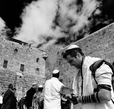 У Западной стены Иерусалимскрго храма разрушенного войсками римского императора в 70г. Стена символизирует для евреев любовь Бога.