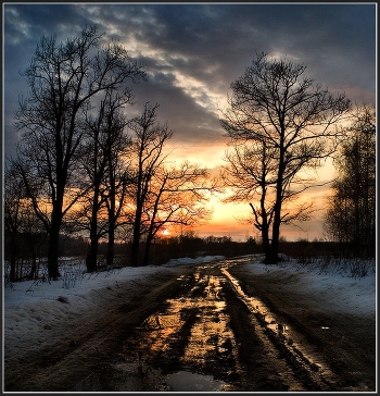 Возвращаясь с рыбалки по последнему льду.