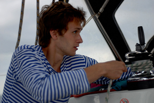 Перекладка паруса. Сын за работой. ))