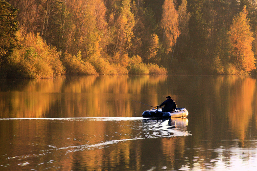 рыбак дорОжит осеннее озеро на закате