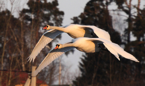 пара лебедей в марте, в период гнездования