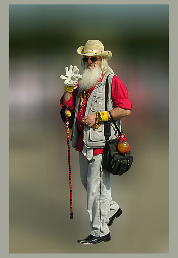Встретил дедулю на Дне города. И так он не вписывался в нашу реальность, что задник пришлось убрать.