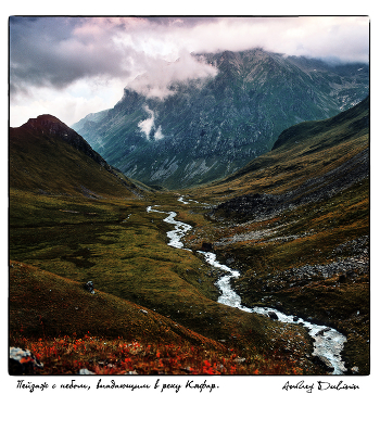 Еще одна открытка про Западный Кавказ. Сразу за моей спиной большое озеро, исток реки Кяфар - почти километровое зеркало среди скального цирка площадью в 20 кв.км. Наполняется из подземной реки в которую можно попасть из о.Провального. А если идти вперед, вниз по течению этого грохочущего как поезд ручья, то через полтора-два часа обнаружится еще одно озеро, Рыбное. В горах озёра как жемчужины в бусах - нанизаны на нити рек - собирай по ущельям или перебирай как чётки.