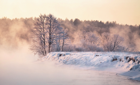Туман над зимней рекой