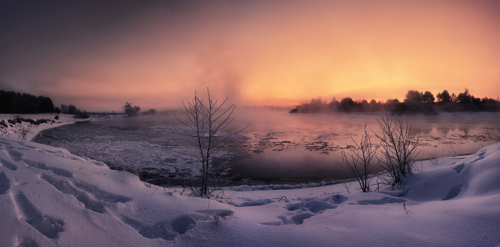 30 мин до рассвета. Около -25 С...
