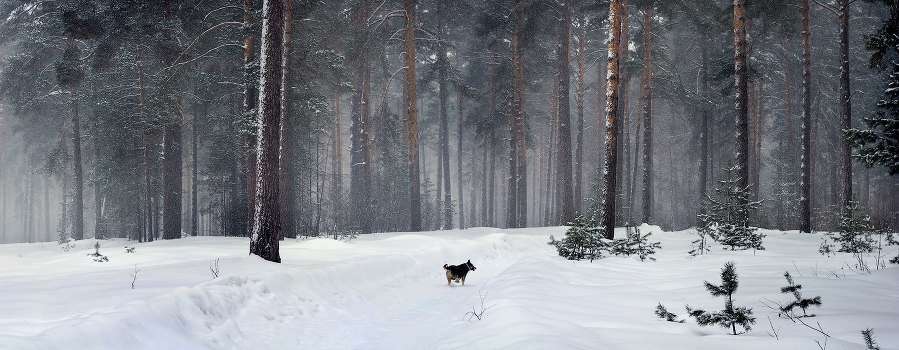 к заснеженному лесу...