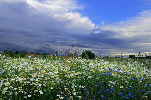 Ромашковая плантация с васильковыми элементами