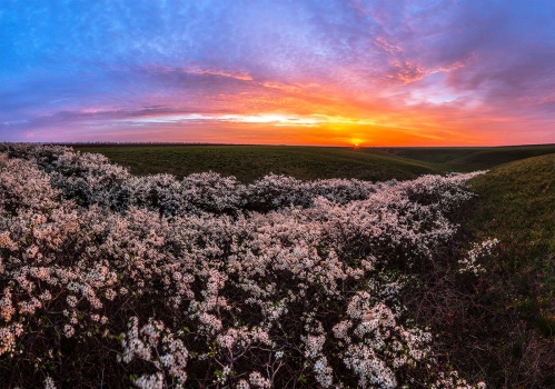 Цветущий тёрн на рассвете.