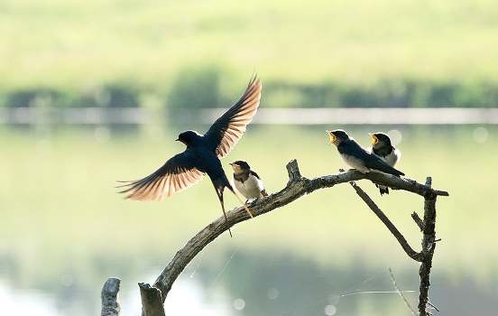 Деревенская ласточка в момент подлёта к птенцам. Россия. Тульская область. Ясногорский район. Большие Байдики.