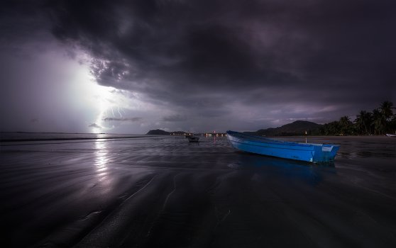lightning hitting at sea shore
