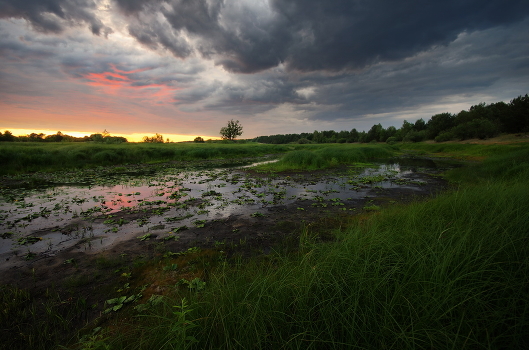 летний вечер, русло почти пересохшей речушки