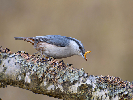 Поползень отыскал мучного червя.