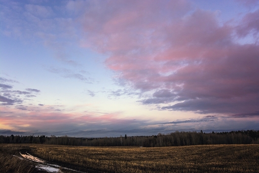 В поле.