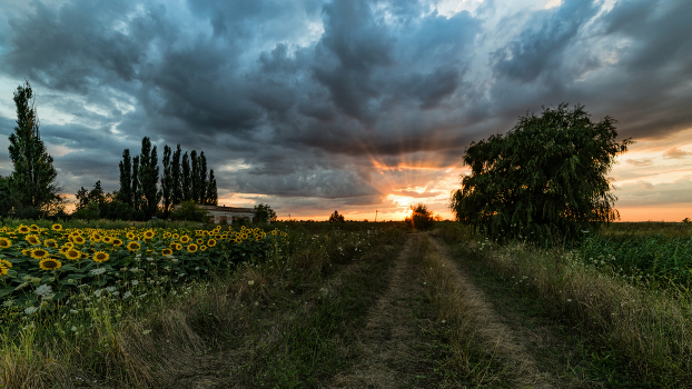 Вечер с подсолнухами у старой насосной станции