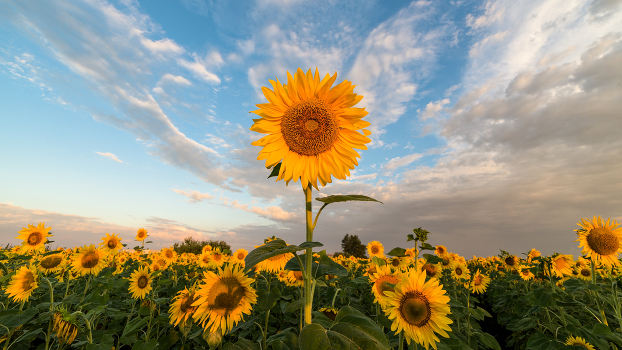 про утро , подсолнухи , центральная композиция и симметрия