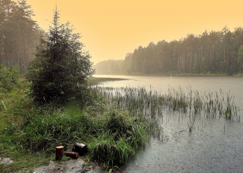 Жарища... И вдруг грянул гром, непонятно откуда, начинают падать капли дождя. Но солнце-то светит вовсю! Слепой дождь! Дождь пошел из грозовой тучи, не заслонившей солнце