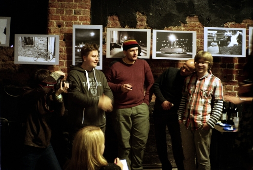 Выставка Саши Чёрного (крайний справа) "Ощущение города", октябрь 2013. Ах, да. Ночная фота висит на стене, так что фотка в тренде...