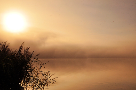 Туманное утро на озере.