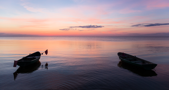лодки ,восход ,облака