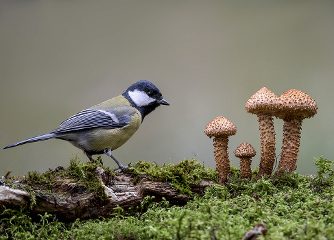 Гриб чешуйчатка обыкновенная и большая синица