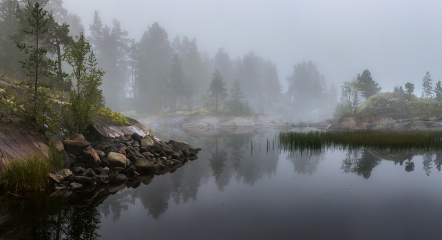 Туманно-пасмурное утро на Ладоге