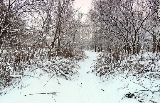 Зимой рано сумерки наступают, но выпавший снег белеет и поздно вечером.