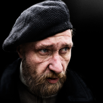 мужчина в берете без перьев