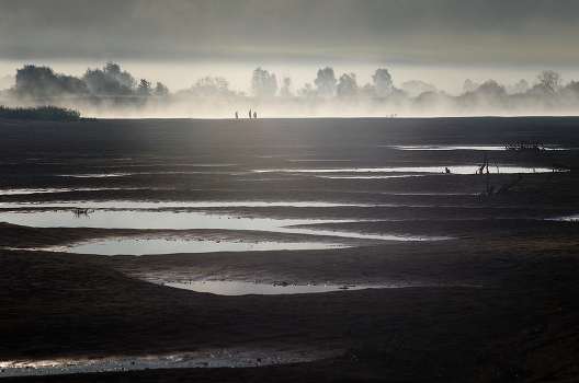 туманное утро, речная отмель