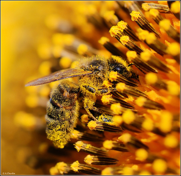 Пчела на соцветии подсолнуха