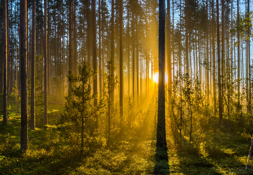 Туманный рассвет в сосновом бору.