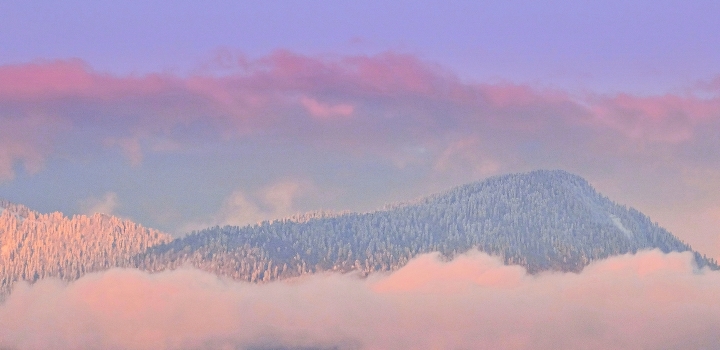 Горы засыпают в розовой перине облаков