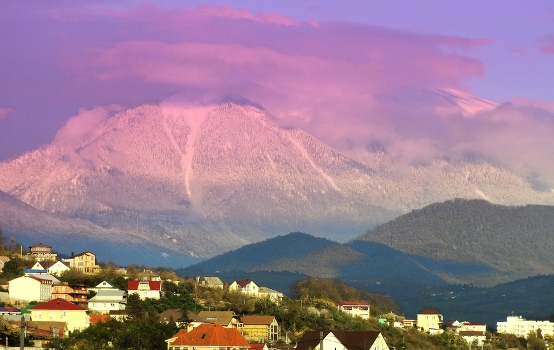 Наступает вечер в предгорье и горах Кавказа