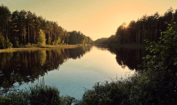 Августовское солнце прячется в лесу