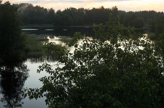 Тихий вечер после урагана. Даже небольшой туман поднимается над рекой.