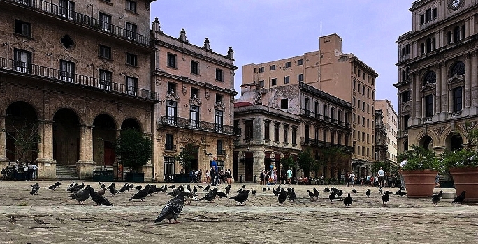 Площадь с голубями в старой Гаване
