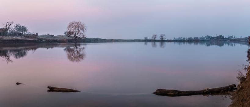 Поздняя осень. Туманный рассвет. Степной пруд.