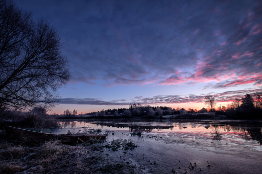 Холодный, ноябрьский рассвет в синих тонах.