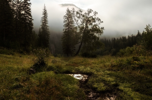 Раннее утро возле реки Мана. Урман.