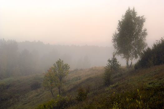 Густой туман осеннего утра