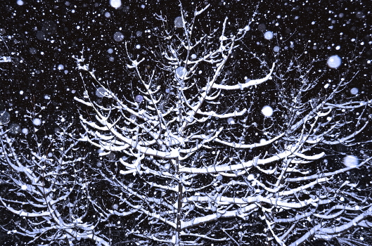 Белый снег, тёмным вечером завораживает.